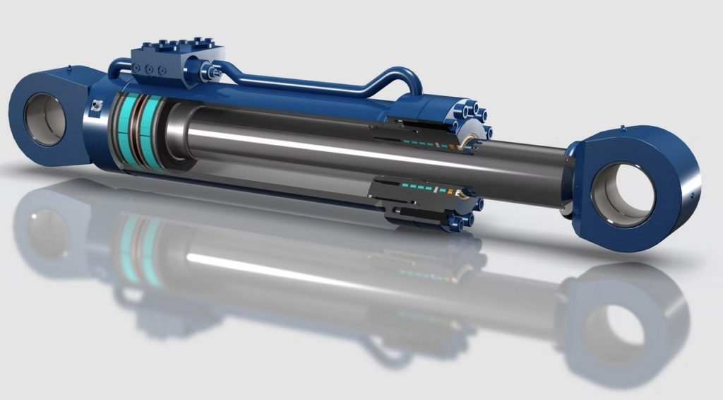 The hydraulic cylinder functions as a hydraulic actuator, converting hydraulic energy into mechanical energy to facilitate linear reciprocating or swing